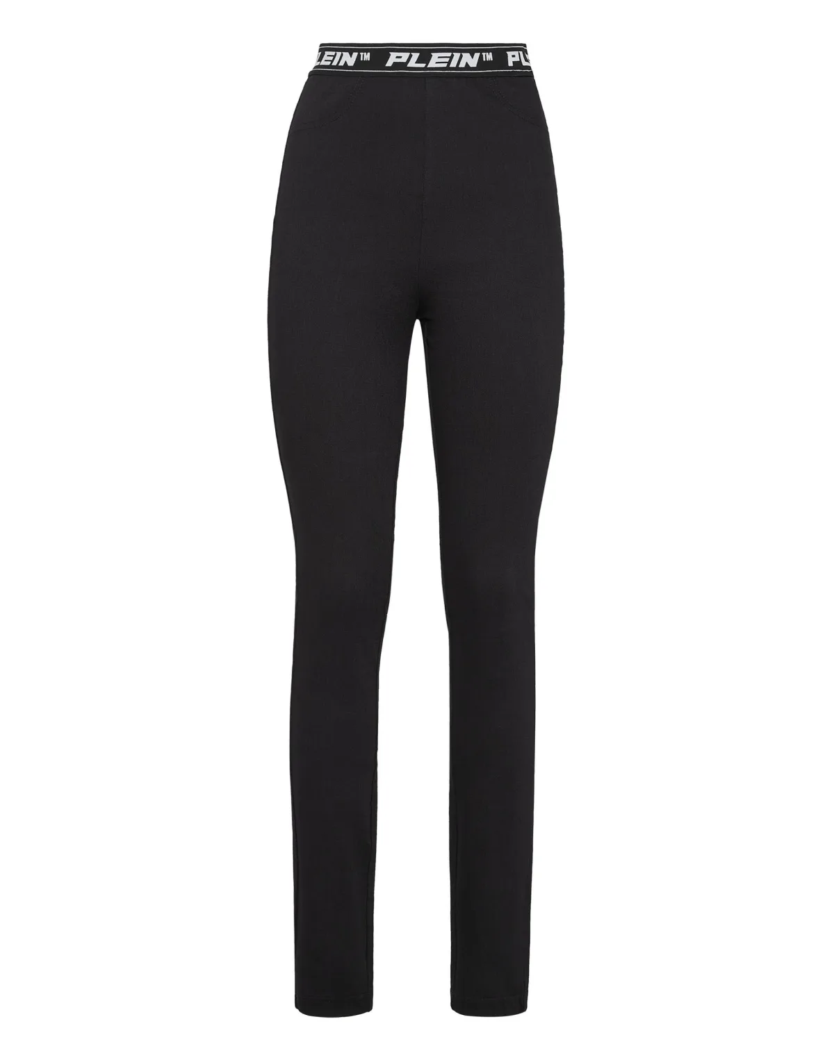 Superstretch stone washed denim legging met elastische tailleband versierd met strass-letters. Onderkant: 28 cm. Pasvorm: Zeer hoge taille.