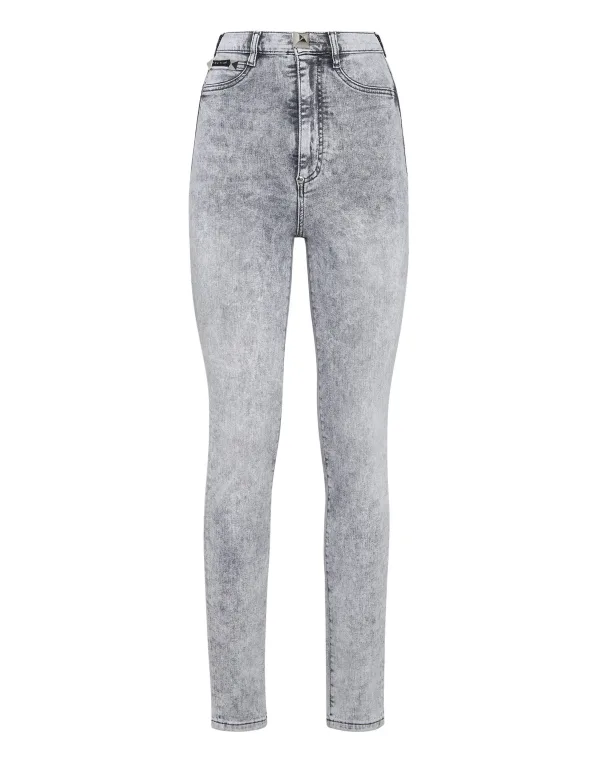 Stretch stone washed denim 5 pocket jeggings met metalen studs. Enkele metalen knoopsluiting.Onderkant: 28 cm. Pasvorm: Zeer hoge taille.
