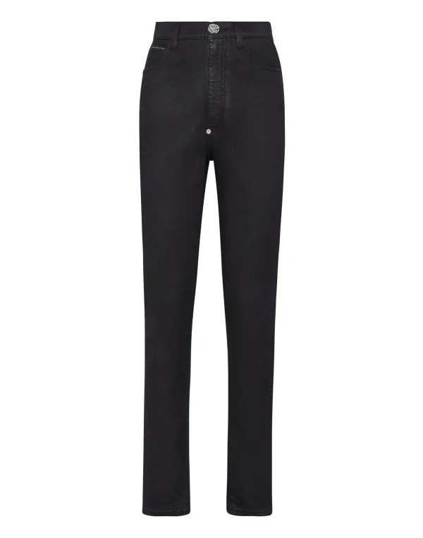 Flatteer je figuur met deze stretch denim 5 pocket jeggings. Dit kledingstuk is ontworpen om je lichaam vorm te geven. Bekijk de details. Zwart overgeverfde stretchdenim Enkele metalen juwelenknoop Geëmailleerde metalen PP Hexagon genaaid op de rechterachterzak Gothic label op de achterkant Stiksels met twee naalden Pasvorm: Super Hoge Taille