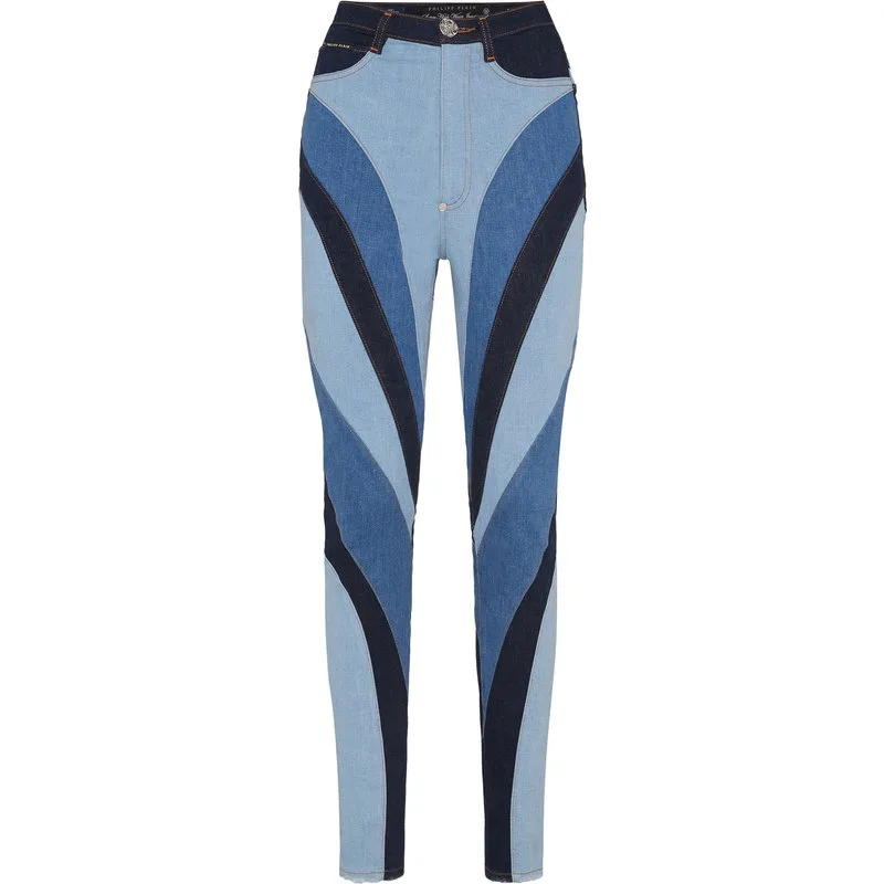 Ontdek het nieuwe seizoensthema met deze originele denim jeggings met verschillende wassingen die een patchworkeffect creëren. Bekijk de kenmerkende details. Stretch stone washed denim Denim patches met verschillende wassingen patchwork Metalen enkele juweelknoop Pasvorm: super High Waist