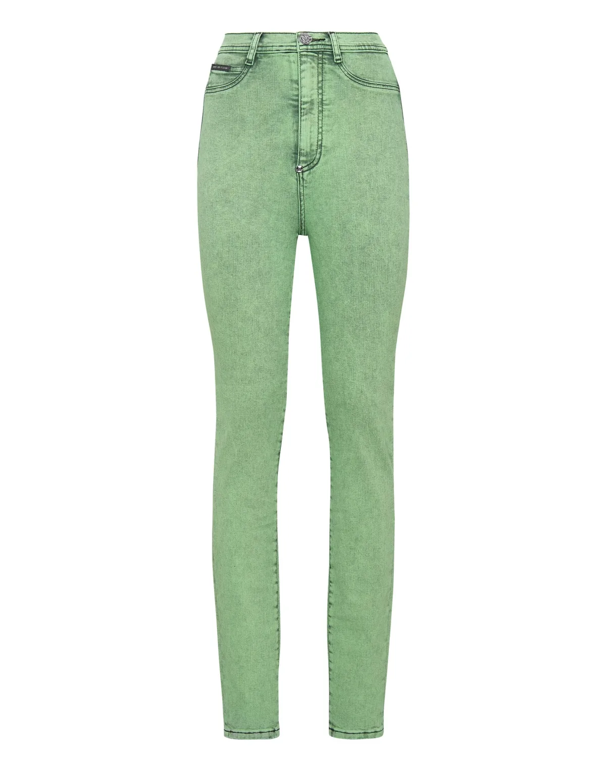 Overdyed stretch stone washed denim 5 pocket jeggings. Enkele metalen knoopsluiting. De patch van het merk is genaaid op de achterste rechterzak. Onderkant: 28 cm. Pasvorm: Zeer hoge taille.