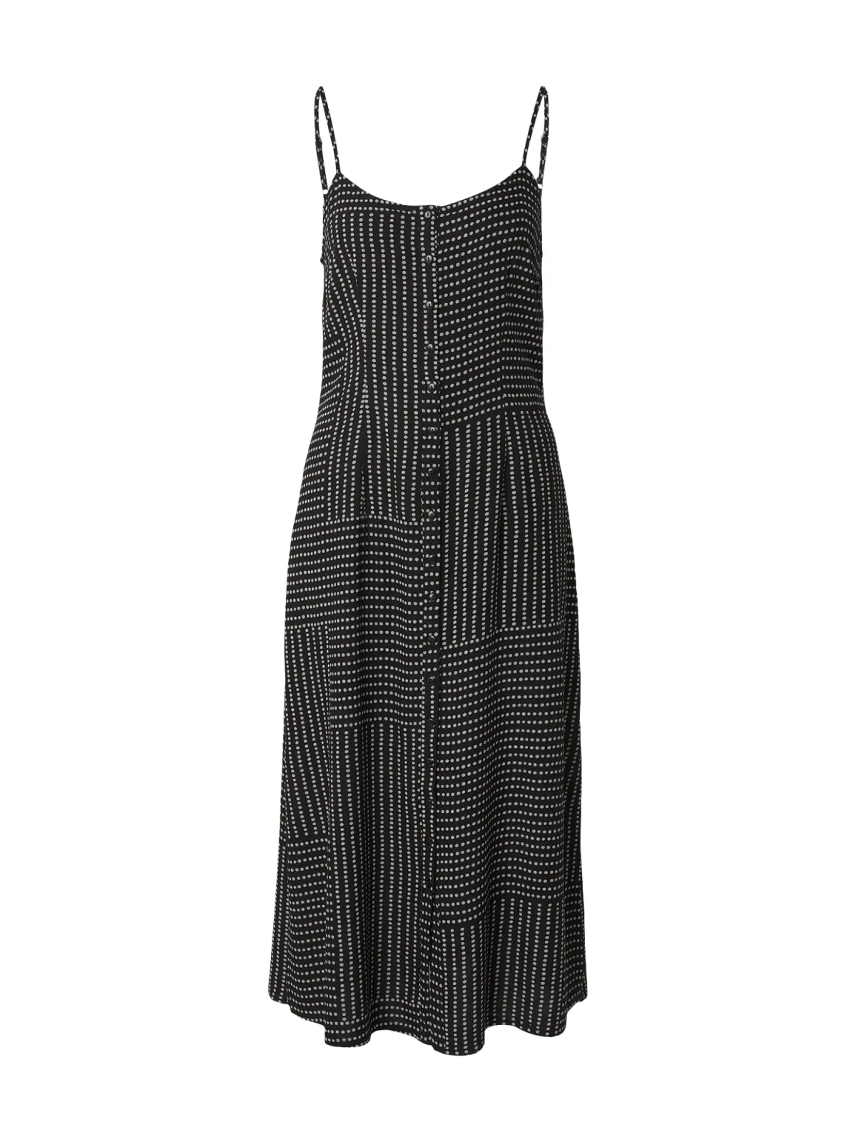 Design: Gevoerde zoom/rand, Knop placket; Materiaal: Viscose; Soort bandjes: Spaghettibandjes; Details: Plooien; Extra's: Verstelbare bandjes, All-over patroon, Voelt zacht aan; Lengte: 3/4 lengte; Snit: Getailleerd; Pasvorm: Normale pasvorm; Armlengte: Mouwloos