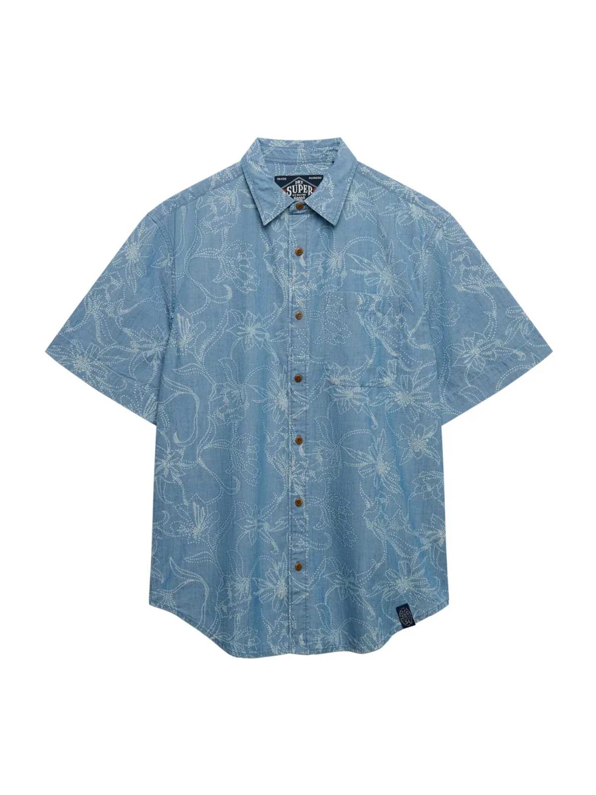 Design: Gevoerde zoom/rand, Placket, Ronde zoom, Borstzak; Type sluiting: Knoopsluiting; Materiaal: Denim; Motief: Bloemenprint; Kraag: Kentkraag; Extra's: All-over patroon, Label patch/label flag, Voelt zacht aan; Pasvorm: Regular fit; Armlengte: Kwartmouw