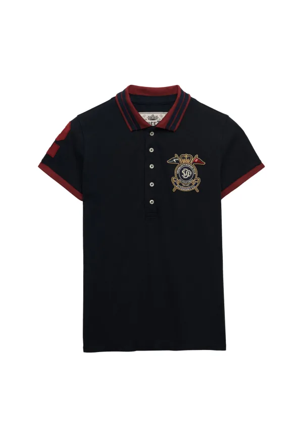 Design: Gevoerde zoom/rand, Geribd ceintuurtje, Contrasterende inserts; Type sluiting: Knoopsluiting; Materiaal: Jersey; Halstype: Polokraag; Motief: Logoprint; Details: Borduursels; Extra's: Label borduurwerk, Op staal naden; Pasvorm: Normale pasvorm; Armlengte: Kwartmouw; Lengte: Normale lengte