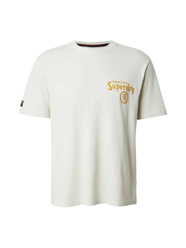 Superdry & Co Shirt ‘TOKYO NARRATIVE’ mosterd / lichtgrijs