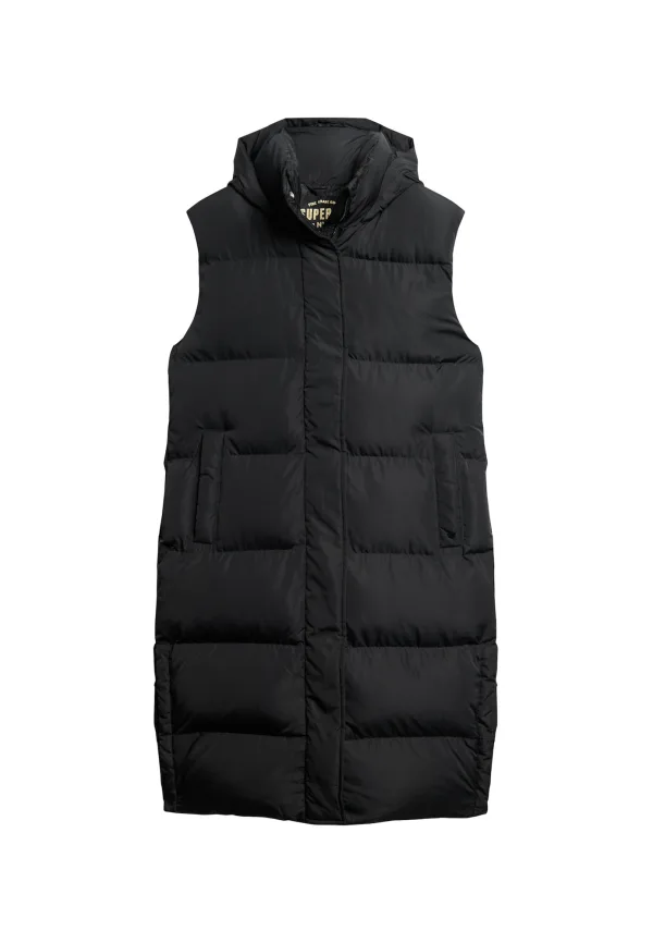 Superdry – Lange pufferbodywarmer met capuchon – Dames – Gilets Prijzen