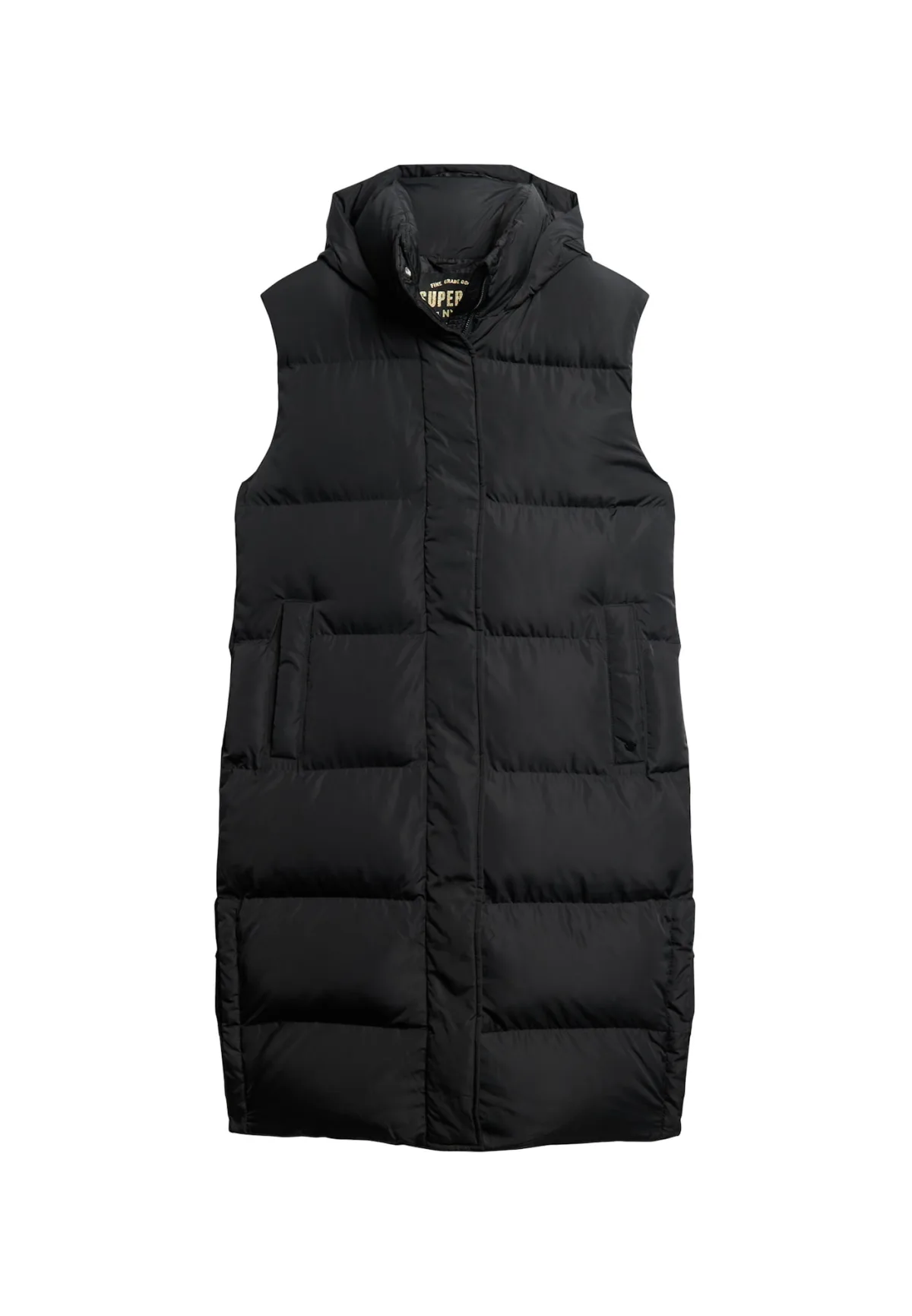 Superdry - Lange pufferbodywarmer met capuchon - Dames - Gilets