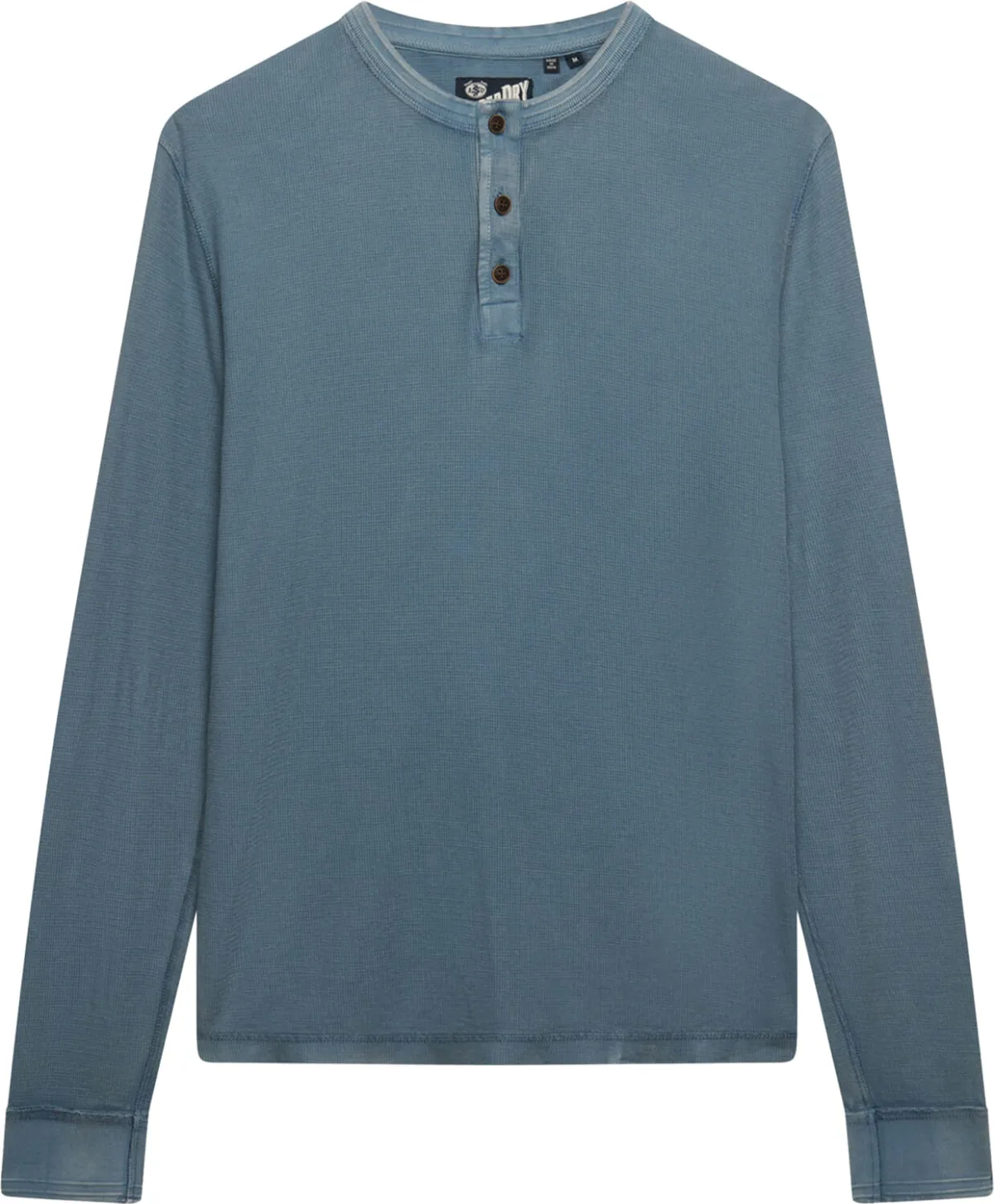 De Longsleeve grandad textured van Superdry combineert een casual stijl met een stijlvolle afwerking. Deze longsleeve heeft manchetten met knopen en een ronde hals, terwijl de knopen voor een elegante sluiting zorgen. Het effen patroon maakt het veelzijdig voor elke casual gelegenheid.