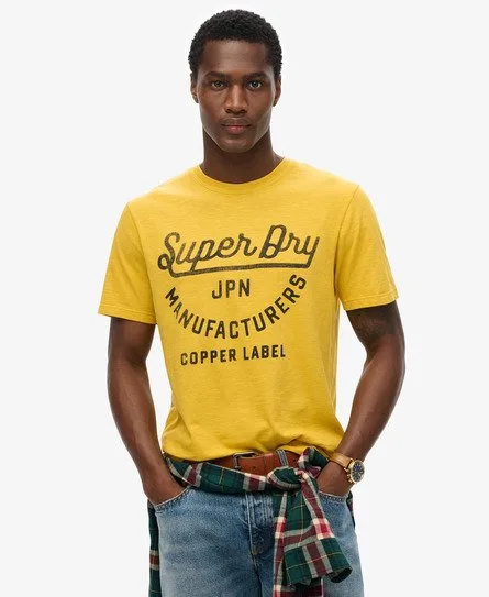 Superdry Mannen Copper Label T-shirt met Tekst Geel