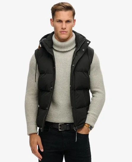 Superdry Mannen Everest Pufferbodywarmer met Capuchon Donkergrijs
