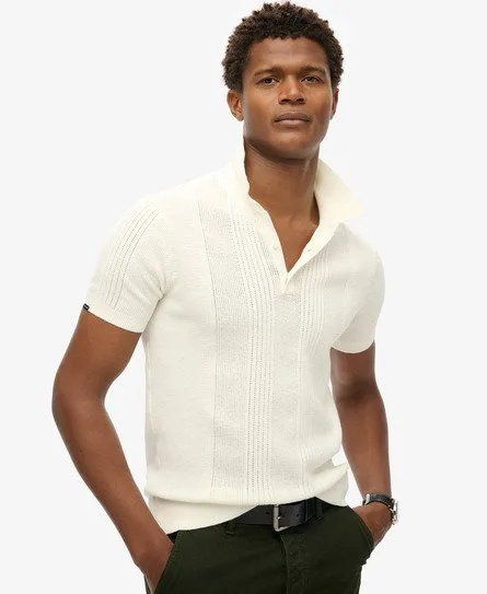 Superdry Mannen Gebreid Poloshirt met Korte Mouwen Wit
