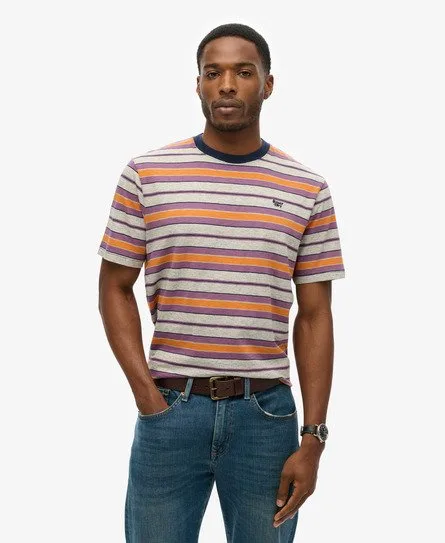 Superdry Mannen Gestreept T-shirt met Relaxte Pasvorm Grijs
