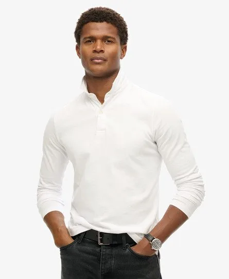 Superdry Mannen Jersey Studios Poloshirt met Lange Mouwen Wit