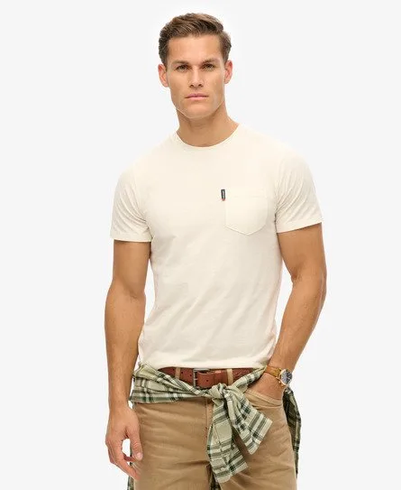 Superdry Mannen Klassiek Essential T-shirt met Borstzak Wit