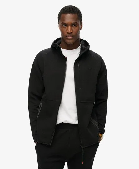 Superdry Mannen Tech Hoodie met Logo, Rits en Losse Pasvorm Zwart