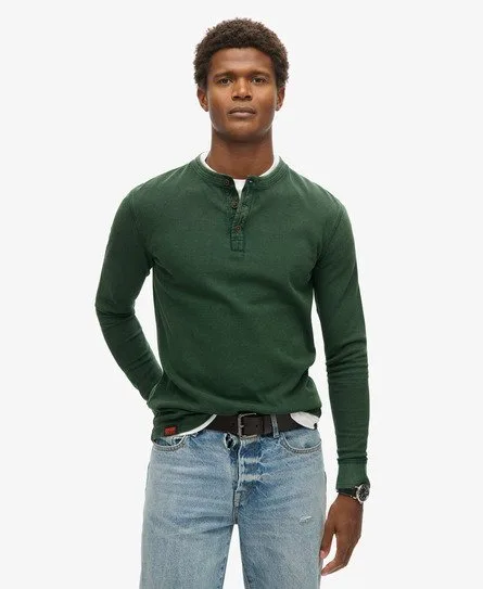 Superdry Mannen Vintage Getextureerde Grandad top Groen