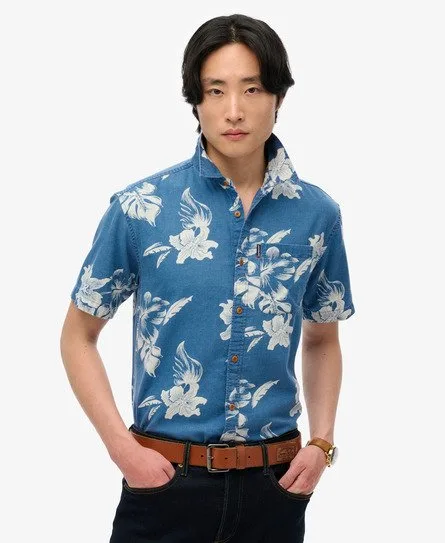 Superdry Mannen Vintage Loom Overhemd met Korte Mouwen Blauw