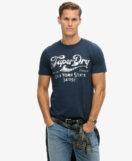 Superdry Mannen Workwear T-shirt met Metallic Print Blauw Prijzen