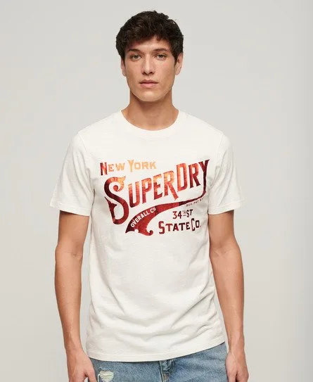 Superdry Mannen Workwear T-shirt met Metallic Print Wit Prijzen