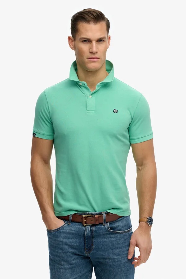 Polo van Superdry met casual, sportieve uitstraling. Dit model heeft een regular pasvorm, korte mouwen en een polokraag met spreidkraag, afgewerkt met een knoopsluiting. De effen stof krijgt karakter door een subtiel logo op de borst. Combineer met jeans of chino voor een relaxte set.