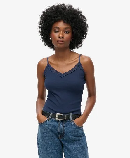 Superdry Vrouwen Athletic Essential Lace Trim Cami Top Blauw
