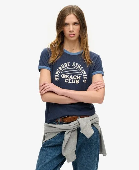 Superdry Vrouwen Athletic Essentials Beach Graphic Ringer T-Shirt Blauw