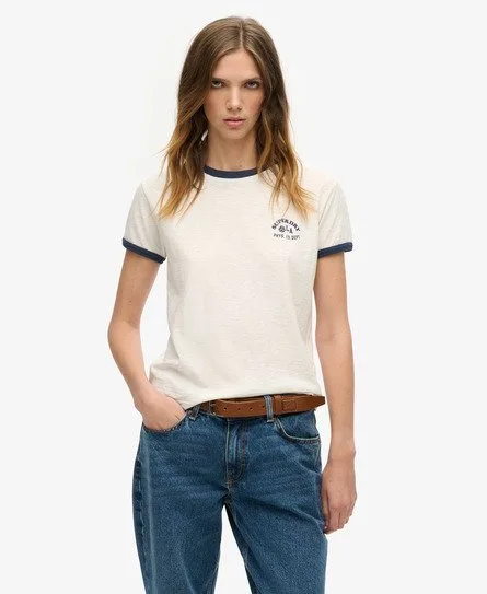 Superdry Vrouwen Athletic Essentials Beach Graphic Ringer T-Shirt Wit