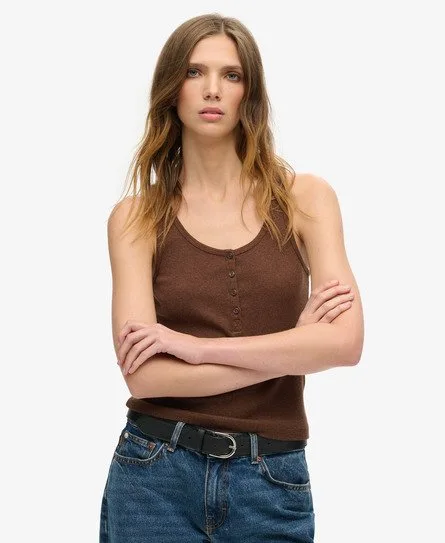 Superdry Vrouwen Athletic Essentials Hemdtopje met Knopen Bruin