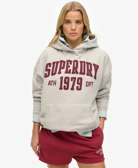 Superdry Vrouwen Athletic Essentials Hoodie met Losse Pasvorm Lichtgrijs Prijzen