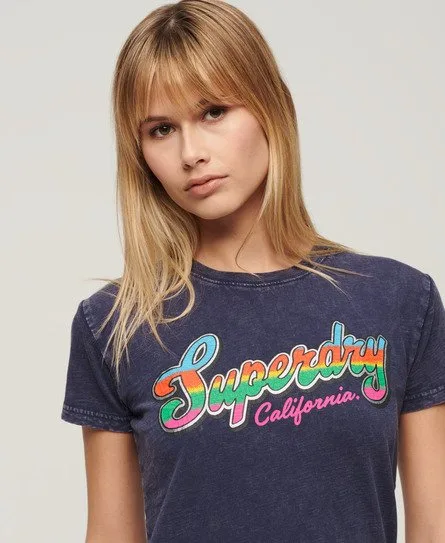 Superdry Vrouwen Cali Sticker T-shirt met Aansluitende Pasvorm Blauw