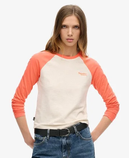 Superdry Vrouwen Essential Baseballtop met Logo en Lange Mouwen Beige
