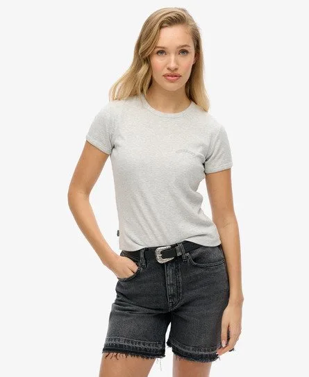 Superdry Vrouwen Essential Geribd T-shirt met Logo Lichtgrijs