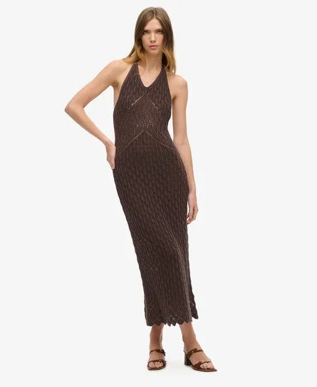 Superdry Vrouwen Gehaakte Maxihalterjurk Bruin