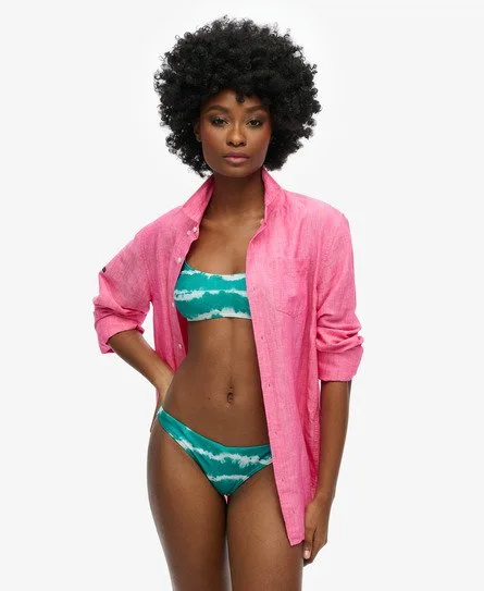 Duik stijlvol het zwembad in met de Tie-dye bikinitop. Word deze zomer hét icoon aan het zwembad in deze must-have. Combineer de top met de bijpassende tie-dye bikinibroekjes voor een perfecte strandlook. Verstelbare schouderbandjes Haaksluiting bandjes Kenmerkend Superdry-logo