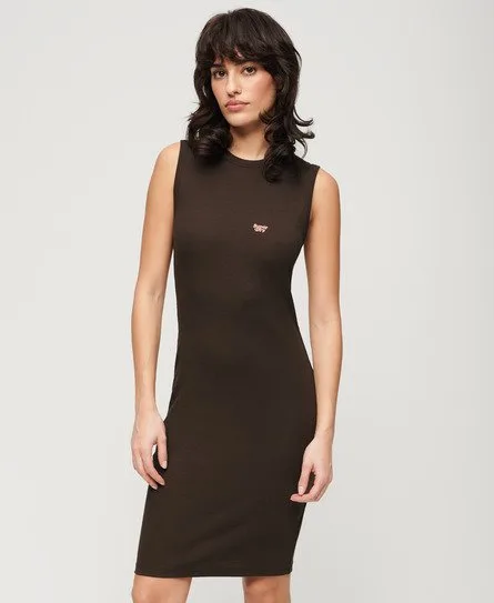 Superdry Vrouwen Geribde, Aansluitende Midi-jurk Bruin