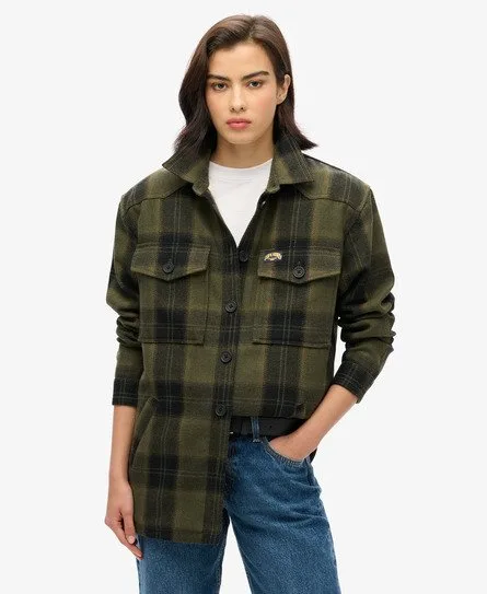Superdry Vrouwen Geruit Overshirt met Borgvoering Khaki