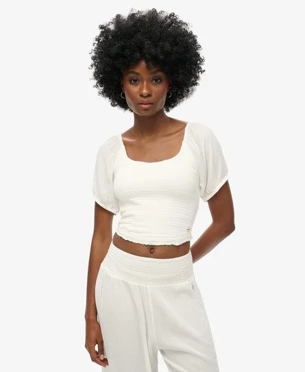 Superdry Vrouwen Geweven top met Smokwerk Wit
