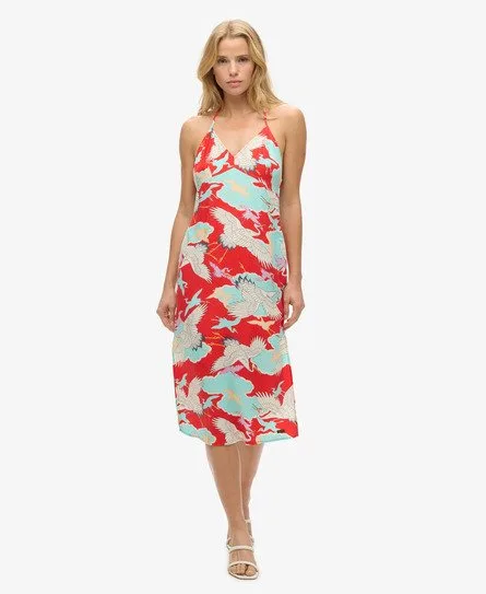 Superdry Vrouwen Halflange Slipjurk met Print Rood
