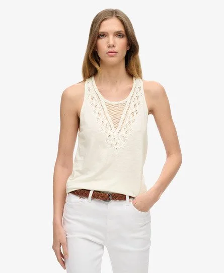 Superdry Vrouwen Jersey Hemdje met Kant Wit