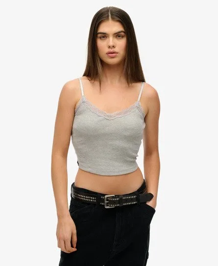 Superdry Vrouwen Kort Athletic Essentials Camitopje met Kanten Rand Grijs