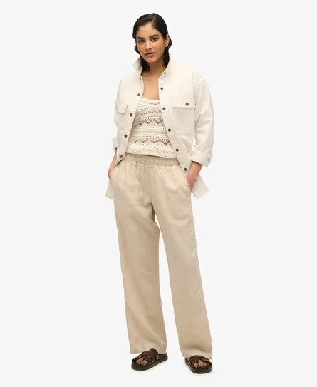 Superdry Vrouwen Linnen Broek met Trekkoord Beige