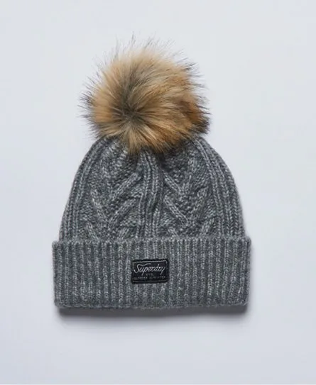 Superdry Vrouwen Luxe Kabelbeanie Lichtgrijs