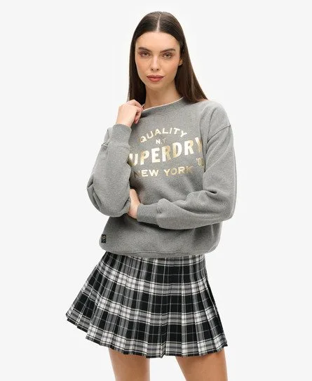 Superdry Vrouwen Luxe Sweatshirt met Metallic Logo Grijs