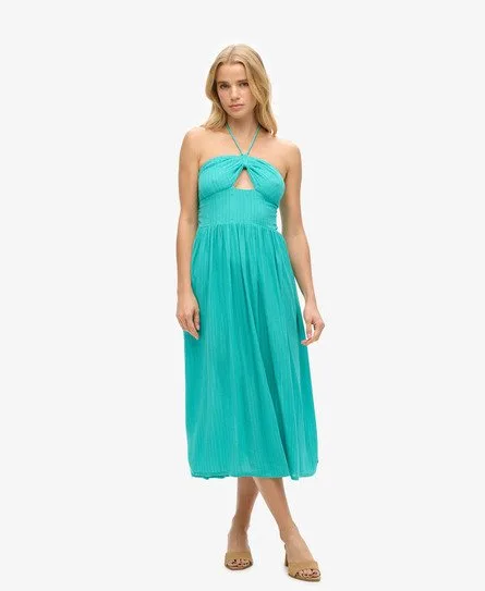 Superdry Vrouwen Midi-jurk met Uitsnijding Groen