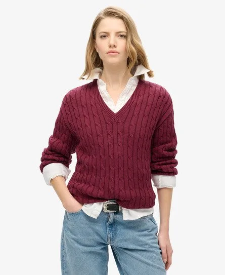 Superdry Vrouwen Oversized Kabeltrui met V-hals Rood