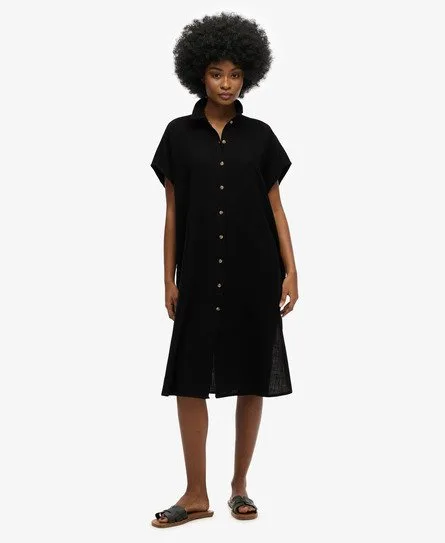 Superdry Vrouwen Oversized Midi-overhemdjurk Zwart