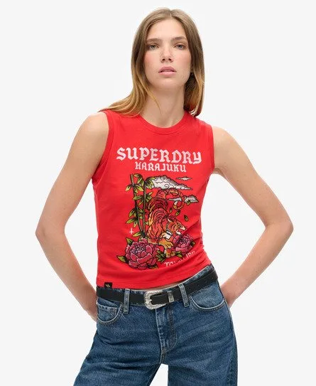 Superdry Vrouwen Tattoo Rhinestone-hemdje Rood Prijzen