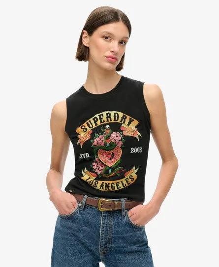 Superdry Vrouwen Tattoo Rhinestone-hemdje Zwart