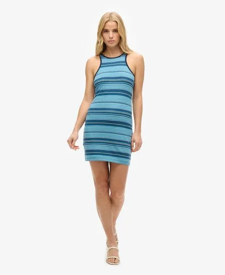 Voeg deze zomer wat retro toe aan je casual kleding met onze Vintage gestreepte racerjurk. Deze racerjurk zorgt ervoor dat alle ogen op jou gericht zijn wanneer je een kamer binnenloopt. Ga dit seizoen voor gedurfd, vol zelfvertrouwen. Slimfit - de nauw aansluitende pasvorm zorgt voor een getailleerd silhouet Contrasterende biezen Ronde hals Mouwloos Lengte tot halverwege het bovenbeen Racerback Geborduurd signature-logo