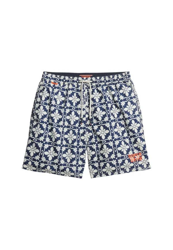 Superdry zwempak voor heren met tegelprint, blauw polyester. Authentiek Superdry-merkkledingstuk - streetwear/sportkleding design van Superdry - Superdry herenmode, perfect voor dagelijks gebruik - dit blauwe Superdry zwempak is ideaal om te combineren met de rest van je garderobe - comfortabele polyesterkwaliteit - klassieke tegelprint -